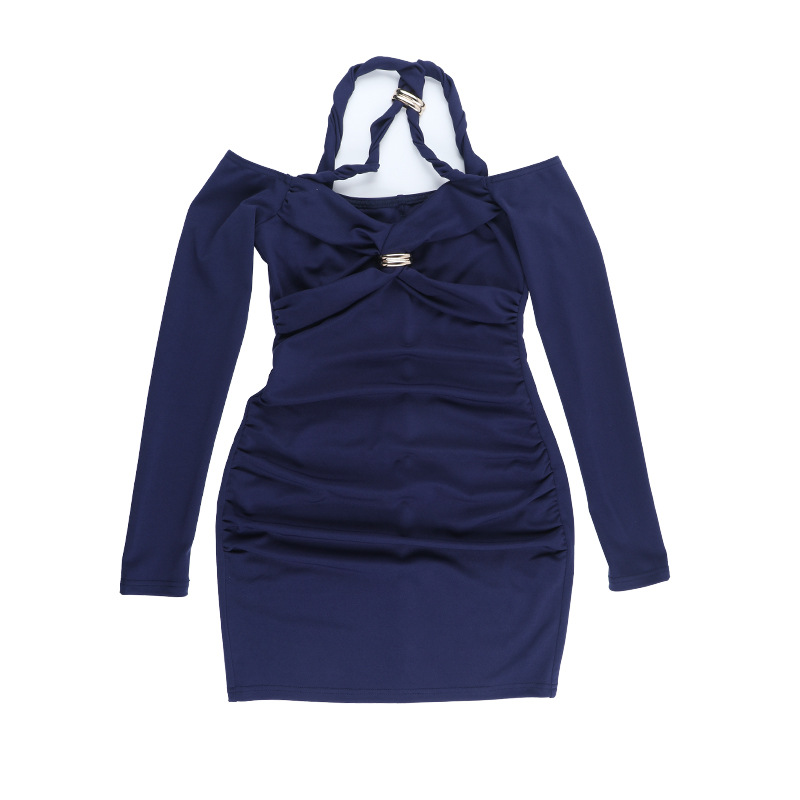 Slim fit inner cross twisted long sleeved dress